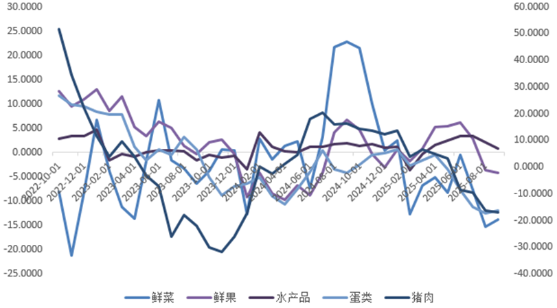 一、食物价钱季节性回升,金价助推中枢通胀。国庆中秋备货需求提振,重复9月朔方蔬菜主产区受降雨影响,食物价钱环比高潮0.7%,转跌为升。但从分项来看,食物价钱分化显然,鲜菜、鸡蛋、鲜果、羊肉和牛肉价钱环比均呈季节性高潮,涨幅在0.9%-6.1%之间;而猪肉和水居品供应弥散,价钱环比差别下降0.7%和1.8%。猪周期以及需求淡季作用下,猪肉供需失衡料握续。节后需求惯性下降,终局采购意愿减弱,宰杀企业开工减少,短期供需防守偏松口头难以扭转,生猪价钱或承压,从而负担全体食物项价钱。
